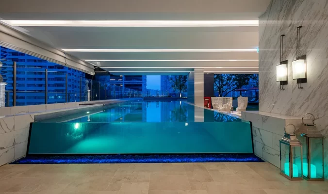 ดื่มด่ำไปกับน้ำที่ใสดุจคริสตัล สระว่ายน้ำไม่เพียงแต่มอบความสดชื่นให้กับการพักผ่อนเท่านั้น แต่ยังเป็นผืนผ้าใบที่สมบูรณ์แบบสำหรับเก็บภาพช่วงเวลาอันสมควรลงอินสตาแกรม บนผนังกระจกอันตระการตาที่ล้อมรอบเส้นขอบฟ้าของกรุงเทพฯ อันน่าทึ่ง